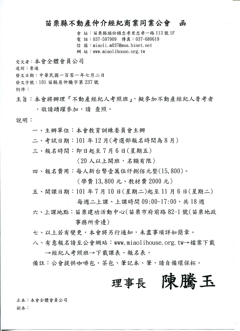 » 本會將辦理『不動產經紀人考照班』,擬參加不動產經紀人普考者