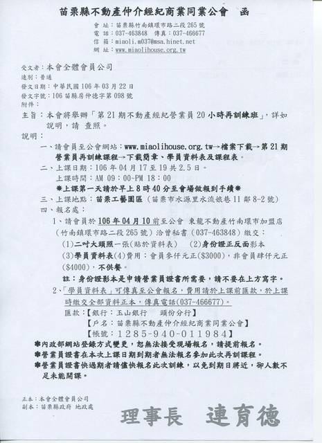 » 發文10600322(德字第098號)第21期營業員複訓正式報名