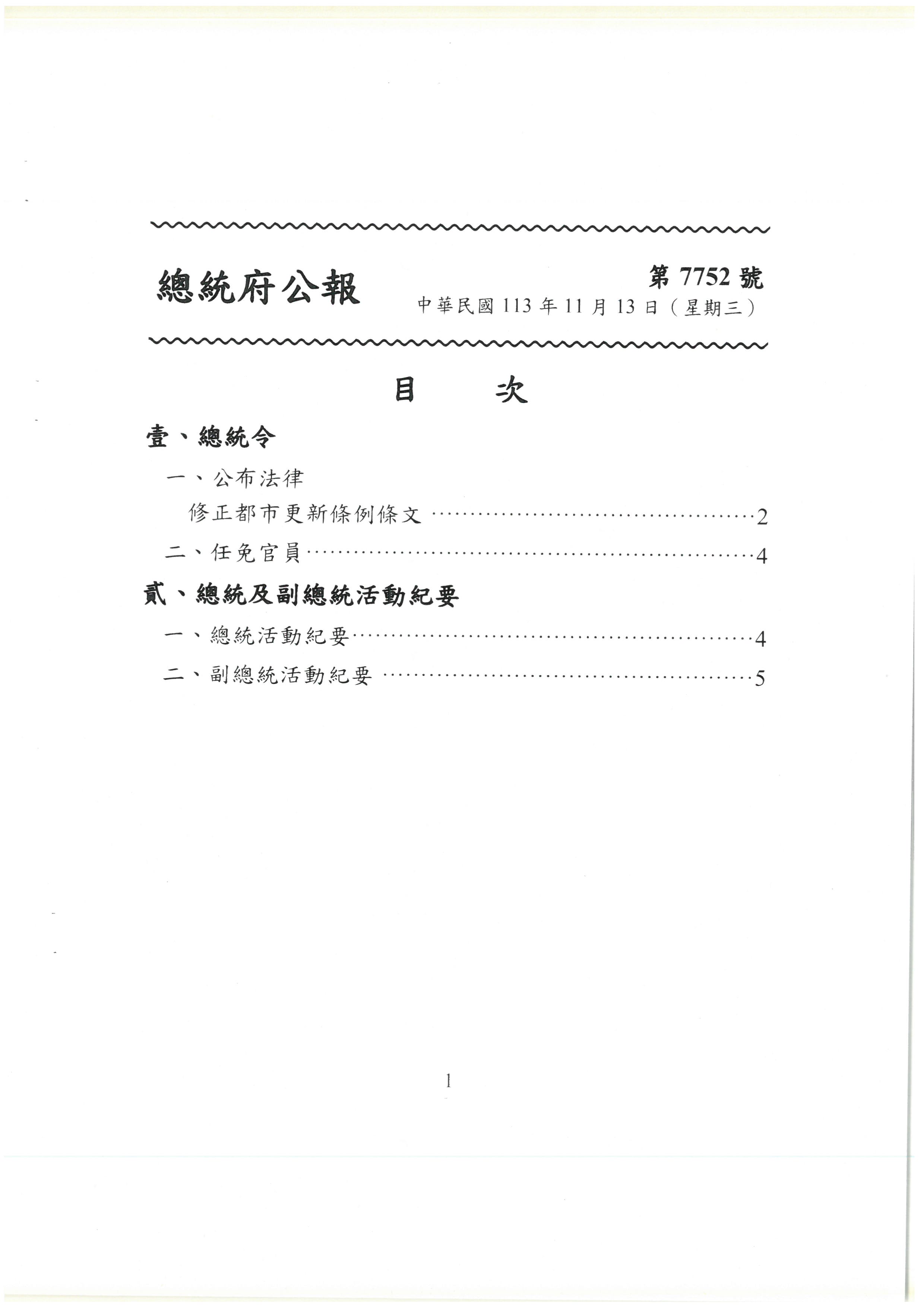 檔案下載(有關內政部修正「都市更新條例修正第六十五條條文」一案,業奉總統113年11月13日華總一義字第11300104921號令公布,請查照。10-6.jpg)